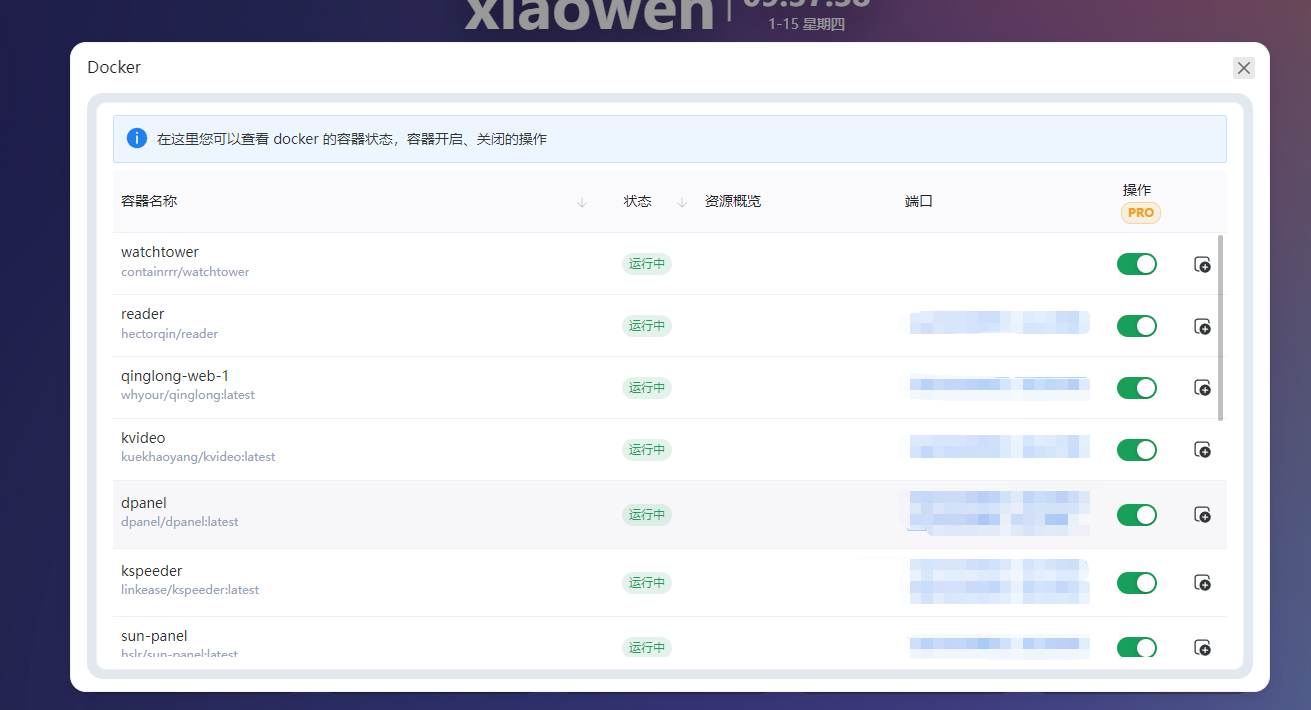 也可以管理控制docker容器启停,不过该功能需要pro授权。