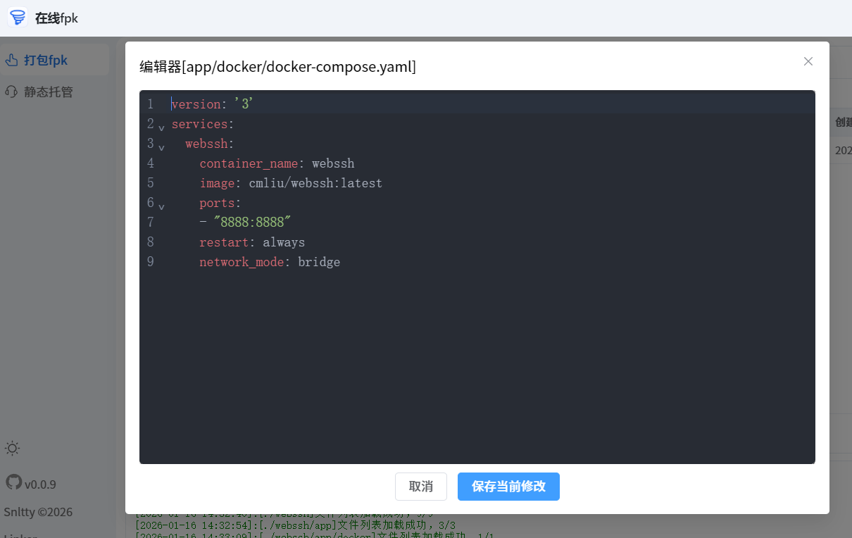 我演示下,大家也可以下载我打包的这个webssh fpk,夸克链接